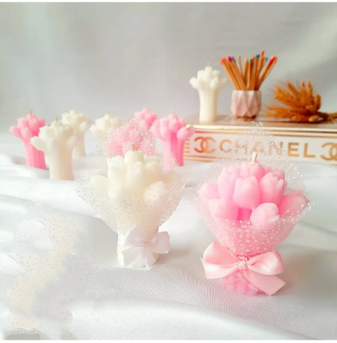 گیفت شمع دسته گل لاله moonlight برای عروسی و نامزدی