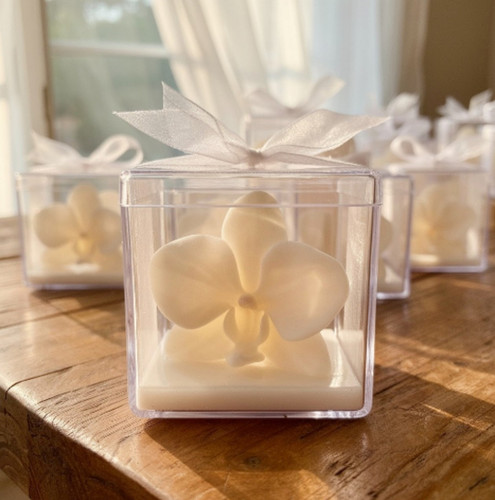 گیفت شمع ارکیده moonlight داخل جعبه پلکسی با لیبل اسم دلخواه