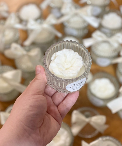 گیفت شمع گل آلاله moonlight با بسته بندی تور مناسب عقد و عروسی