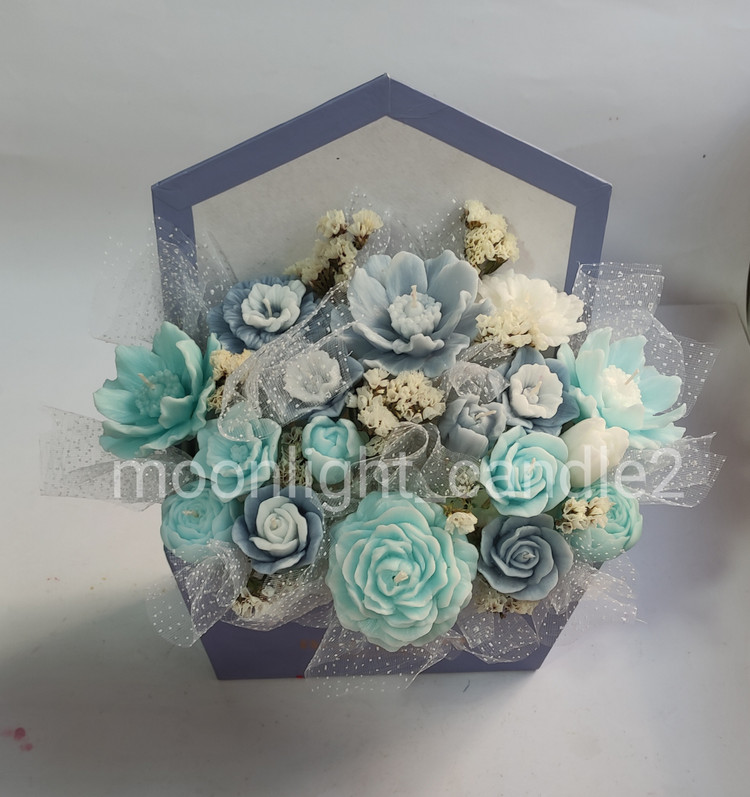 باکس گل هدیه ماندگار moonlight با تزیین گل شمع و گل خشک برای مناسبتهای خاص