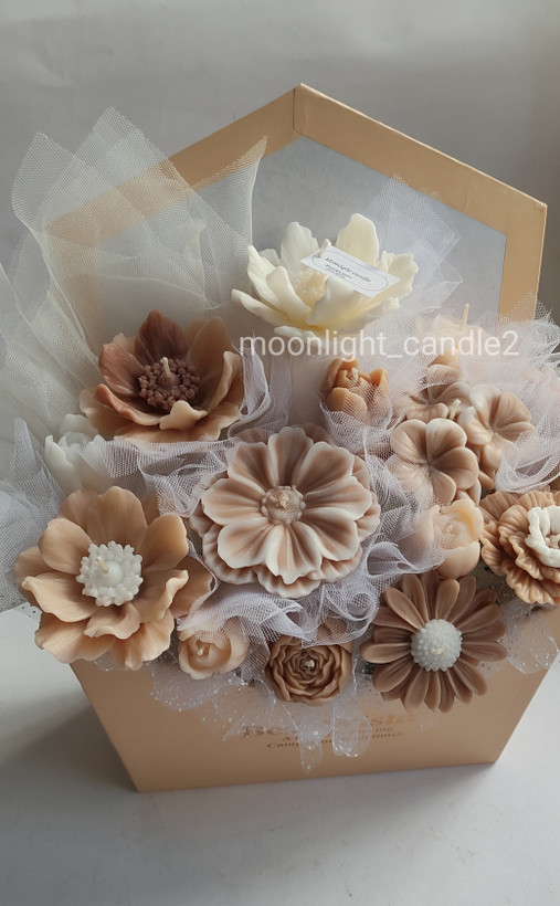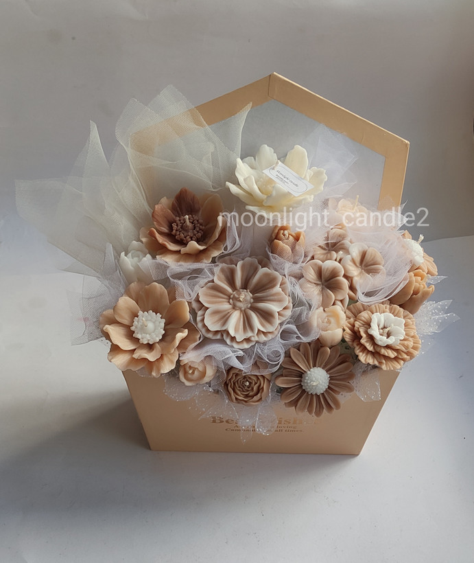 باکس گل ماندگار moonlight لوکس و ترند پرفروش ترین با تزیین گل شمع