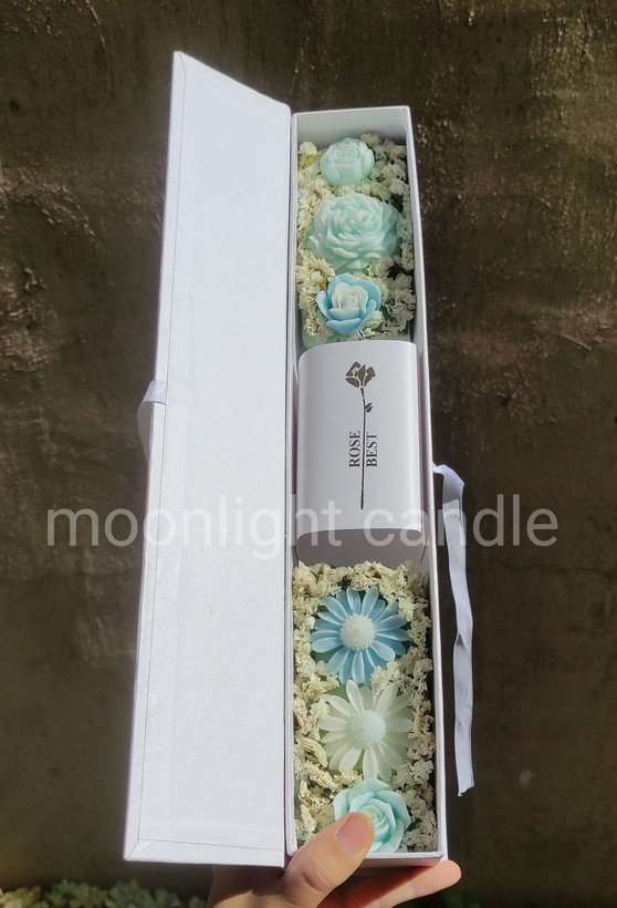 باکس هدیه دکوری مناسبتی moonlight با تزیین گل شمع برای تولد و کادو