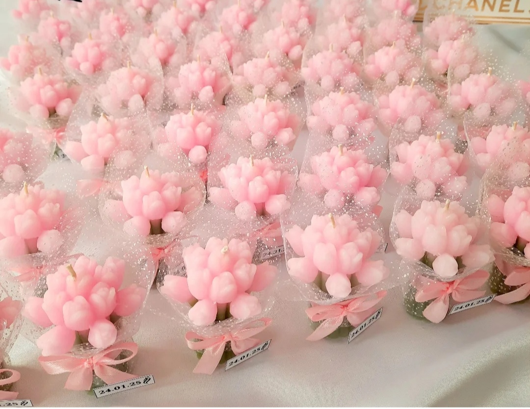 گیفت شمع دسته گل لاله moonlight دو رنگ با لیبل اختصاصی برای جشن و عروسی