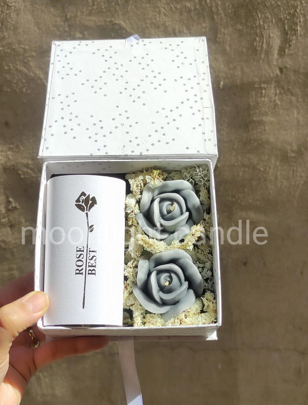 باکس کادویی مینی moonlight طرح لاکچری با شمع و گل خشک