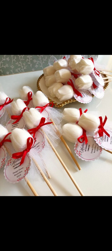 گیفت شمع شاخه ای گل لاله moonlight سفید با تزیین ربان قرمز