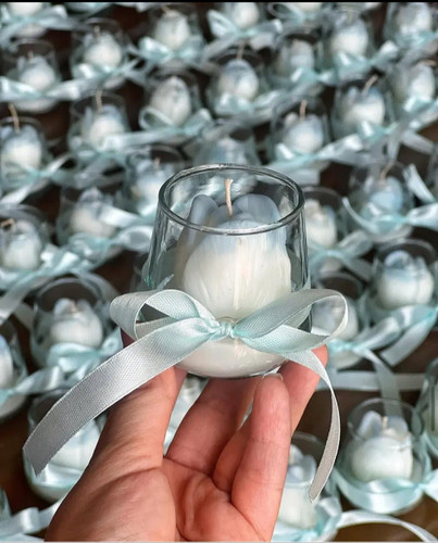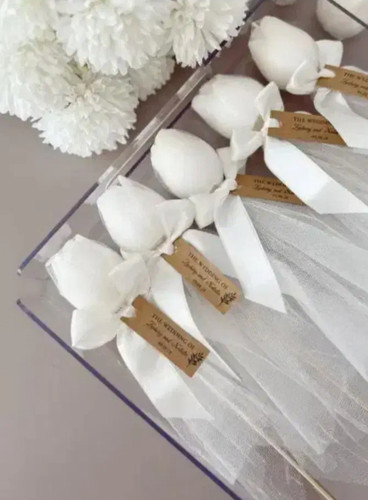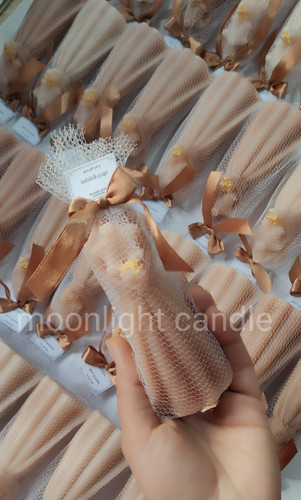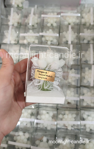 گیفت شمع گل آلاله moonlight با بسته بندی تور مناسب عقد و عروسی