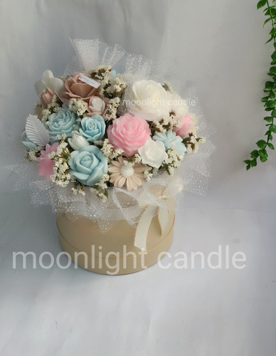 باکس گل هدیه ماندگار moonlight با دیزاین شمع های لوکس و رنگ نود